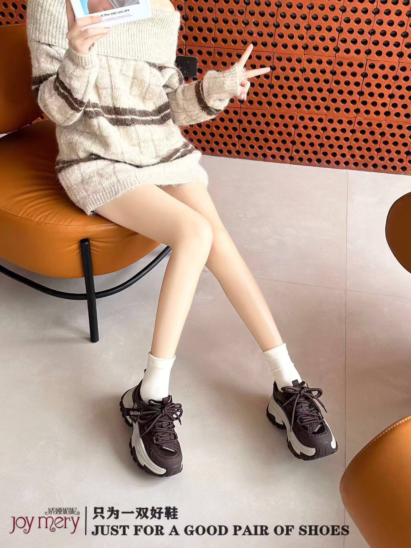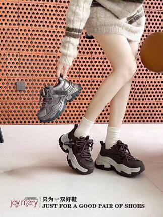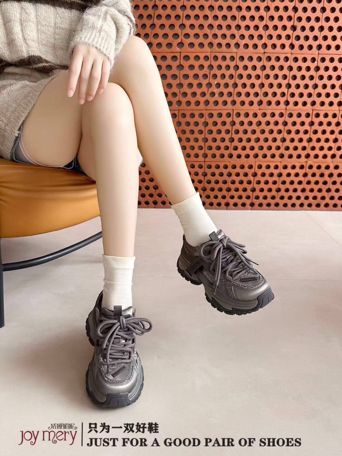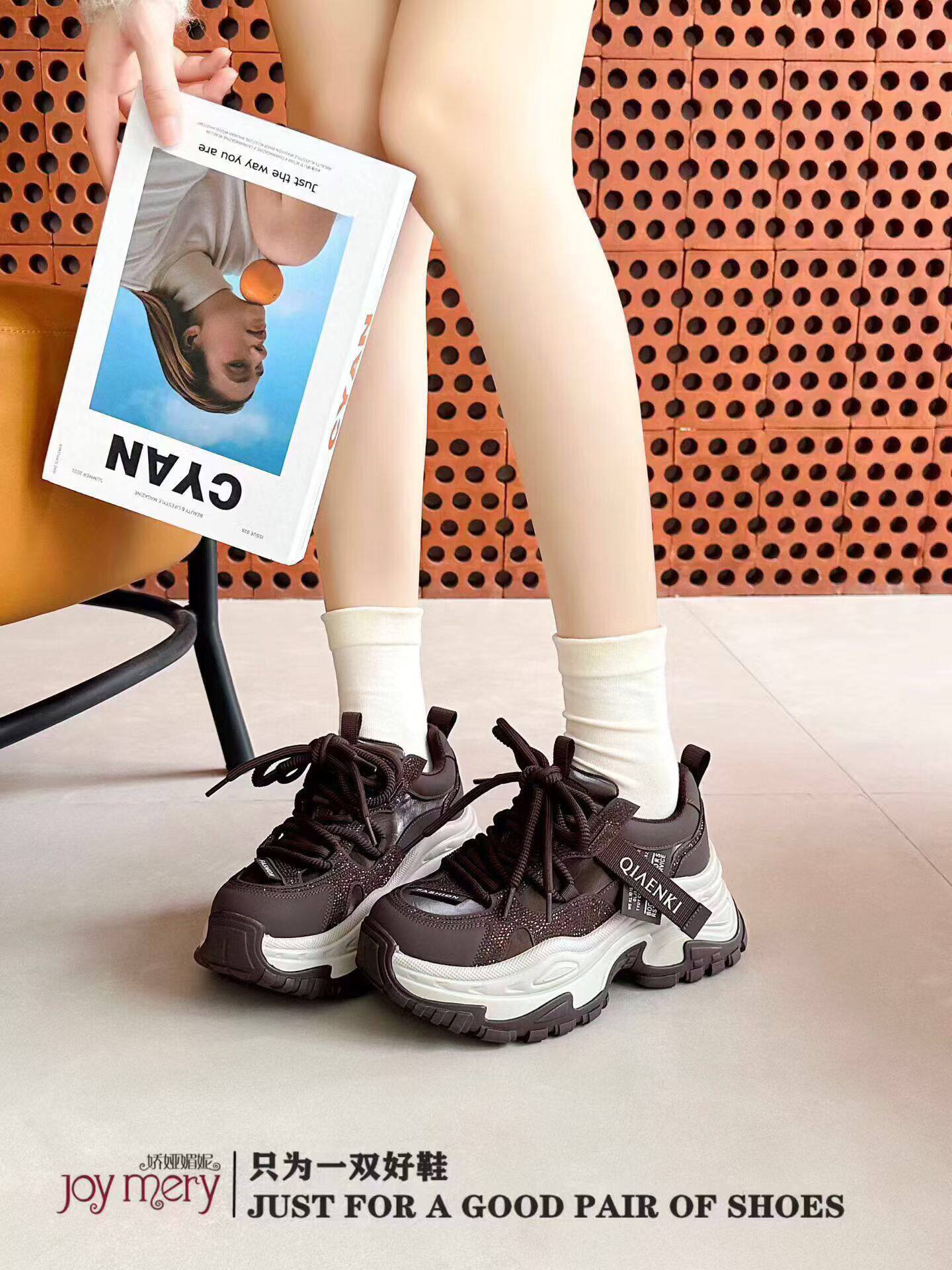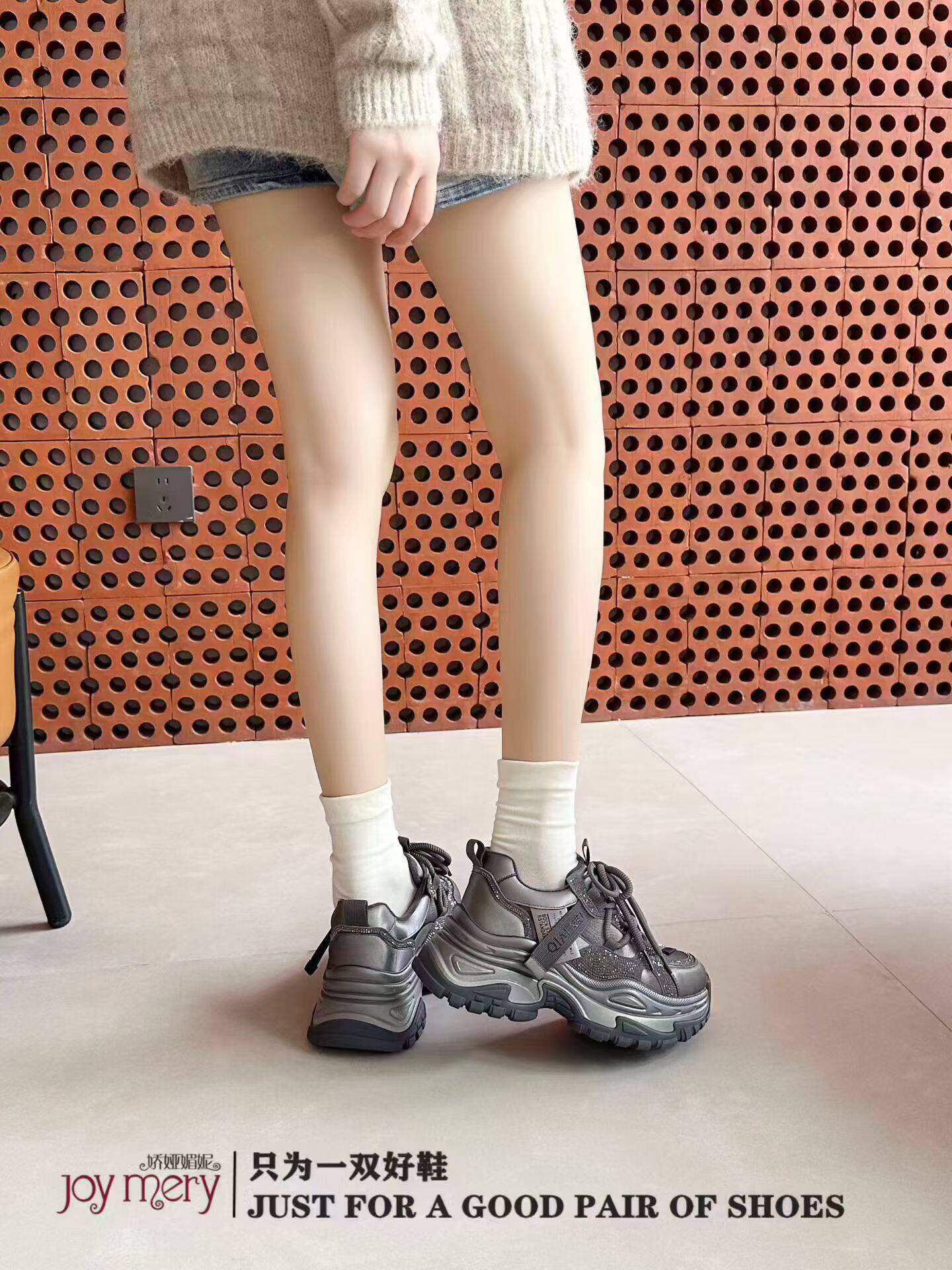 专柜正品娇娅媚妮2026新款商场同款真皮满钻厚底系带老爹鞋休闲鞋