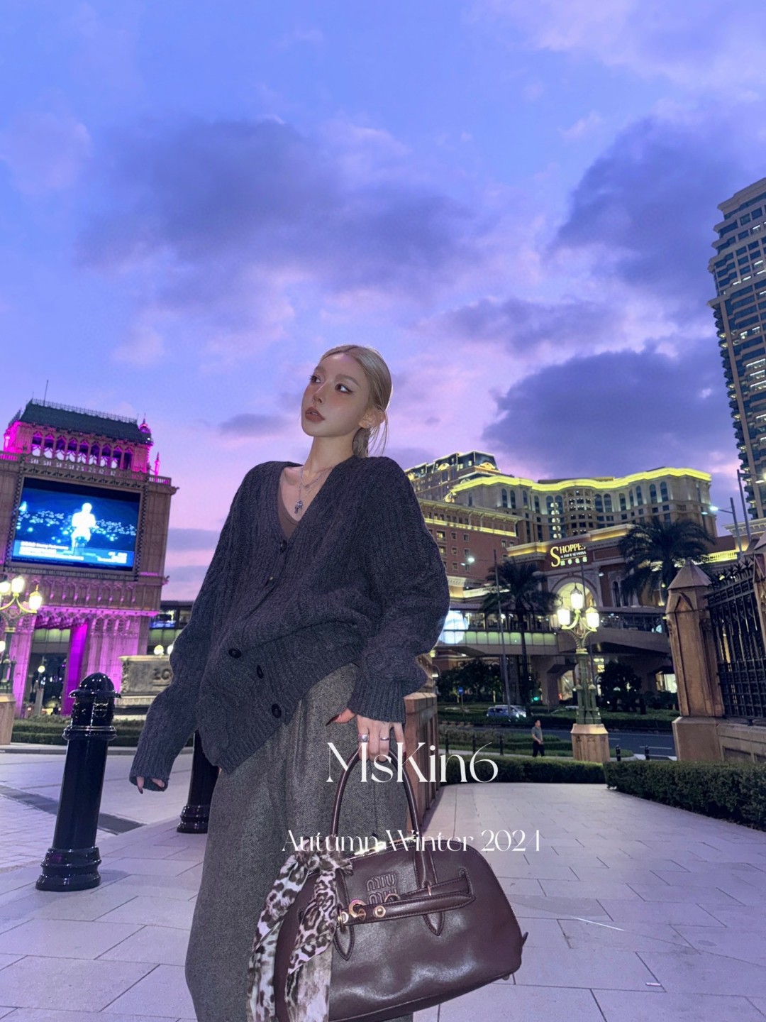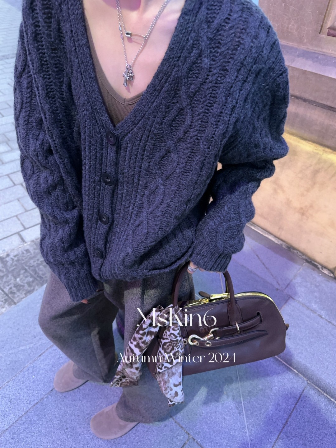 2024女秋冬新款V领麻花针织开衫宽松慵懒风毛衣外套百搭减龄学院