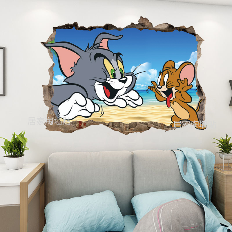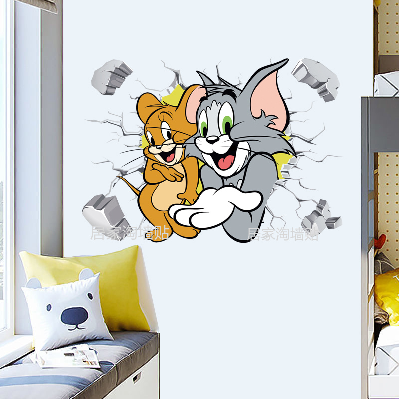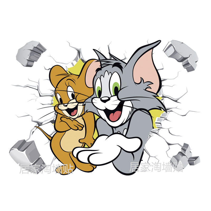 3d立体猫和老鼠墙贴画卧室儿童房间创意客厅墙壁装饰防水自粘贴纸