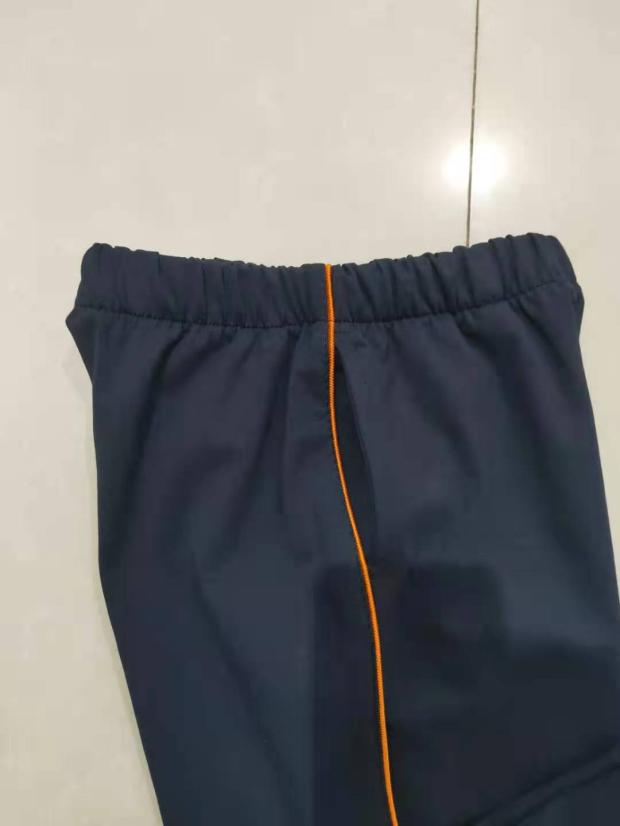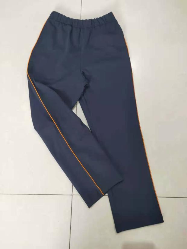 订做纯棉中小学生男女校服长裤深藏蓝色加橘色细条杠运动校裤子
