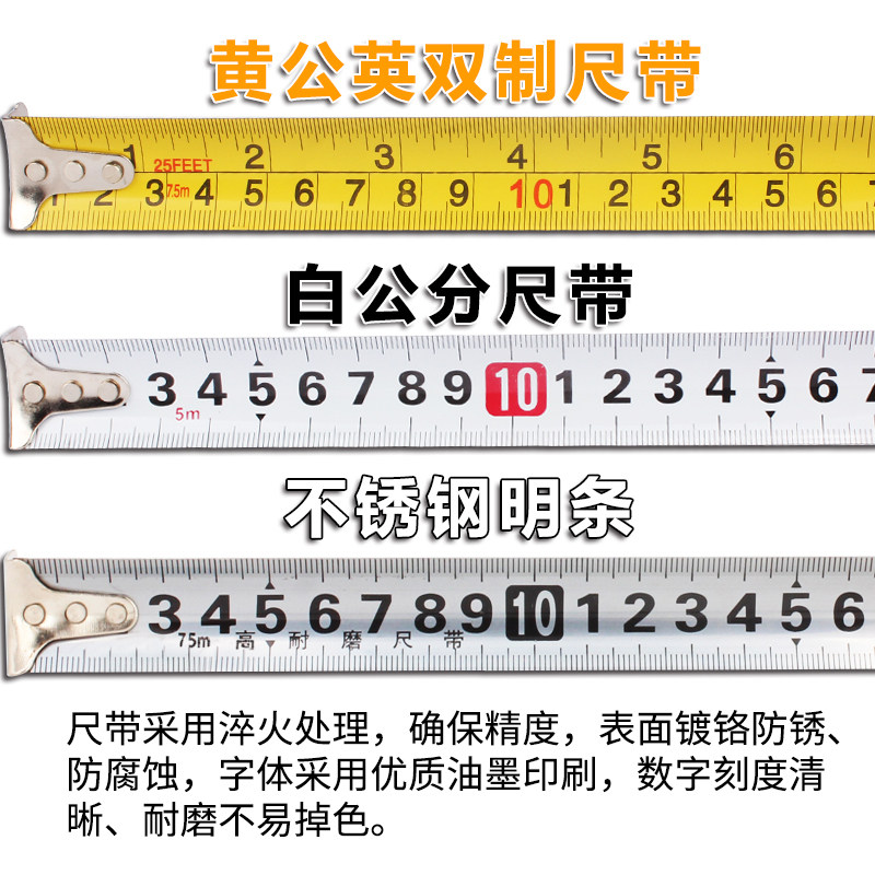 东升钢卷尺 3米5米7.5米 自锁包胶卷尺盒尺尺子木工测量工具包邮