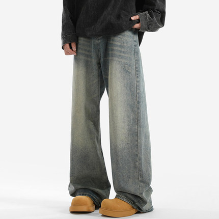 SHAPOES春秋季男生美式复古水洗牛仔裤男士潮牌宽松直筒休闲裤子
