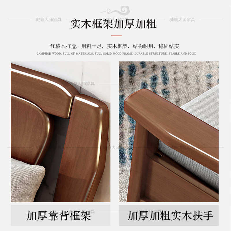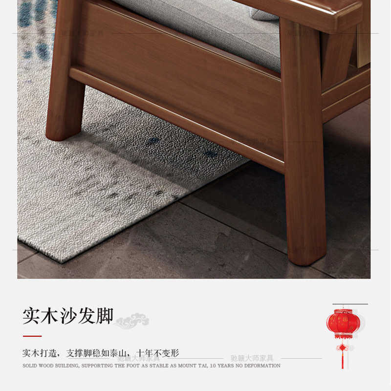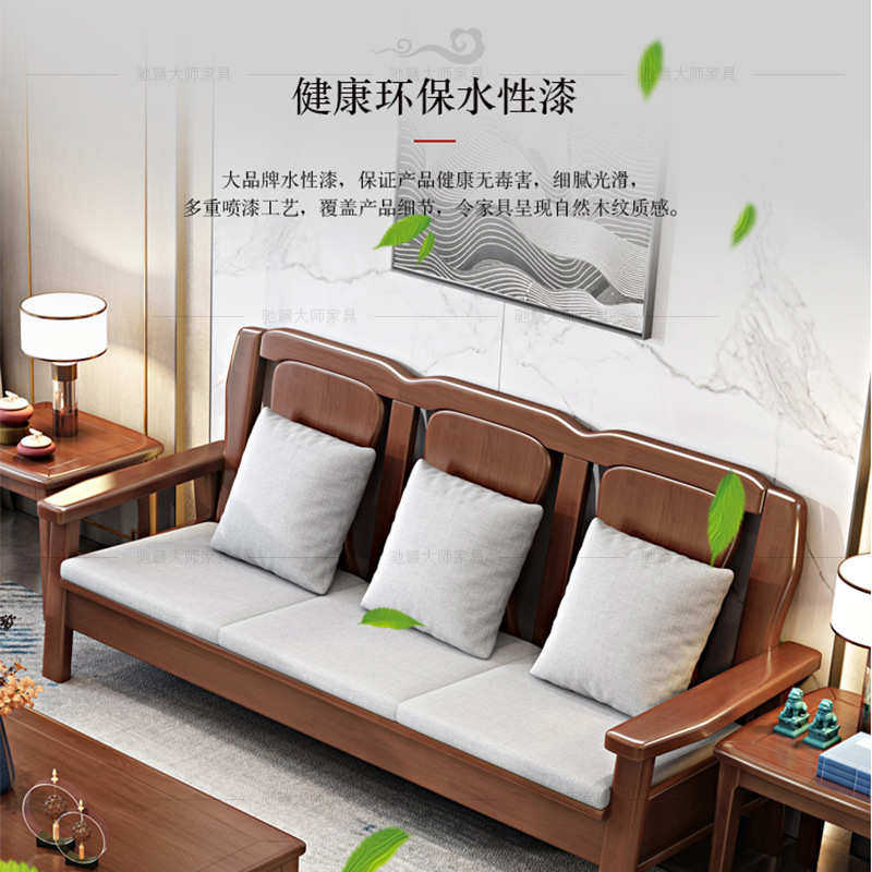 中式全实木仿古沙发农村自建房小户型三人位家用木质沙发