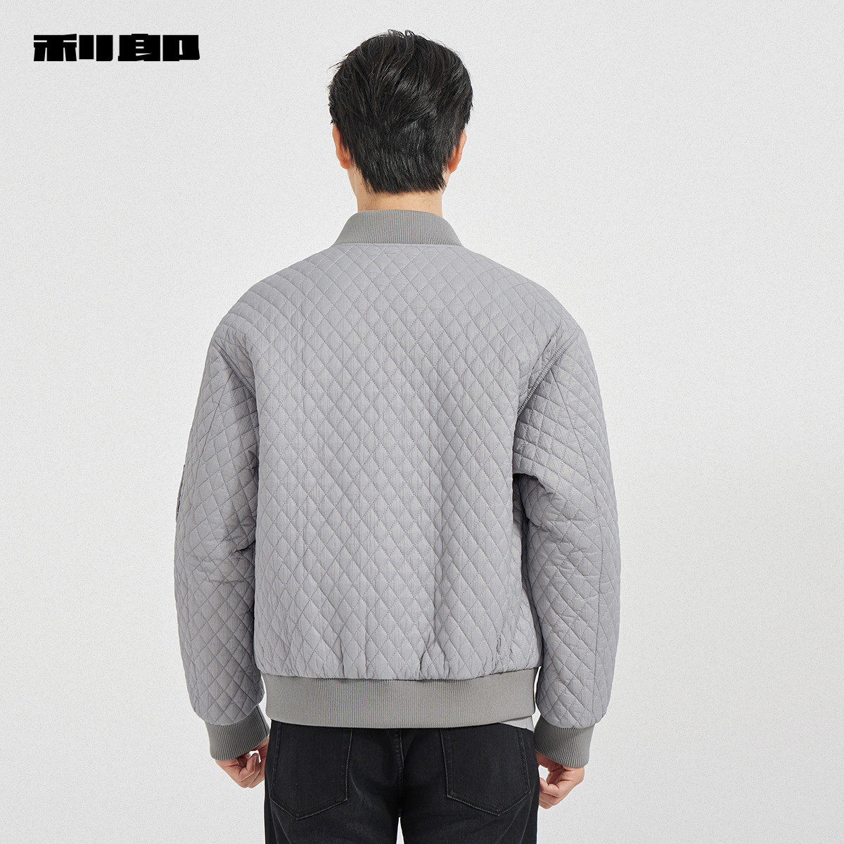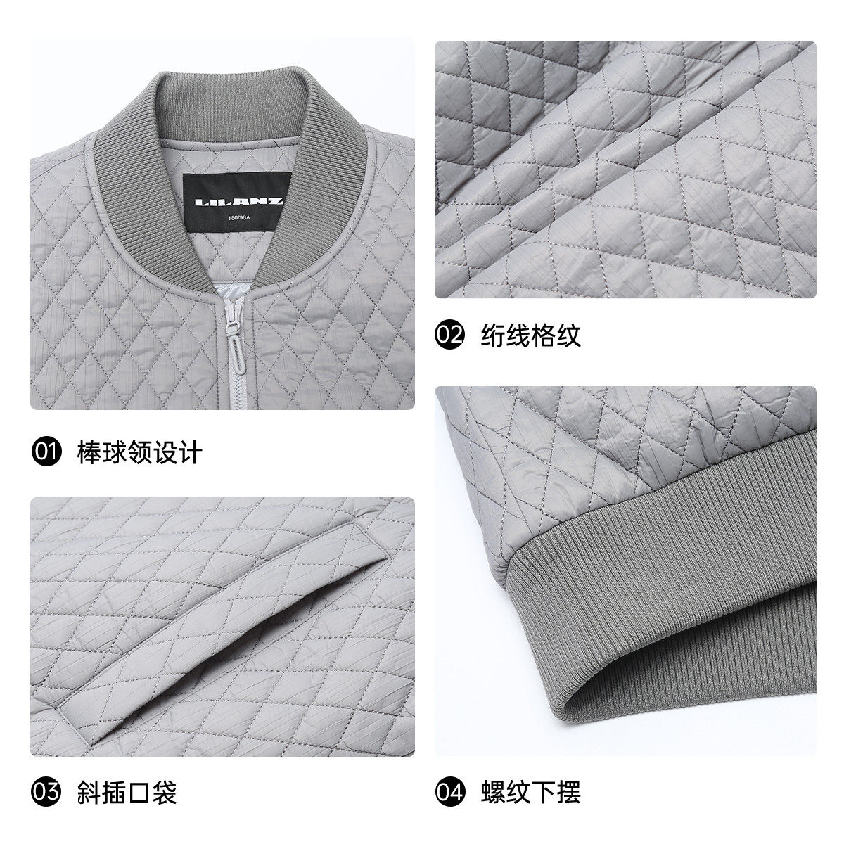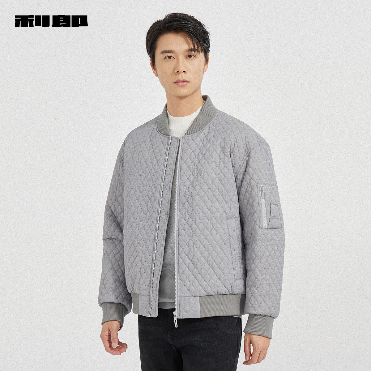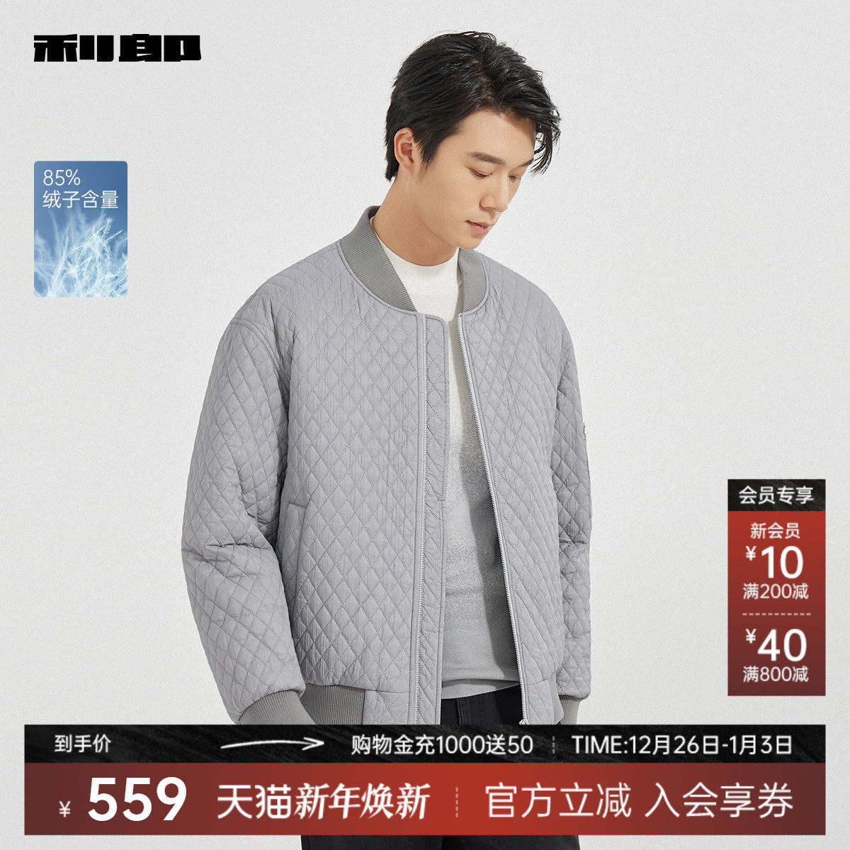 利郎官方 羽绒服男士25冬季休闲男装短款绗线格纹棒球领保暖外套