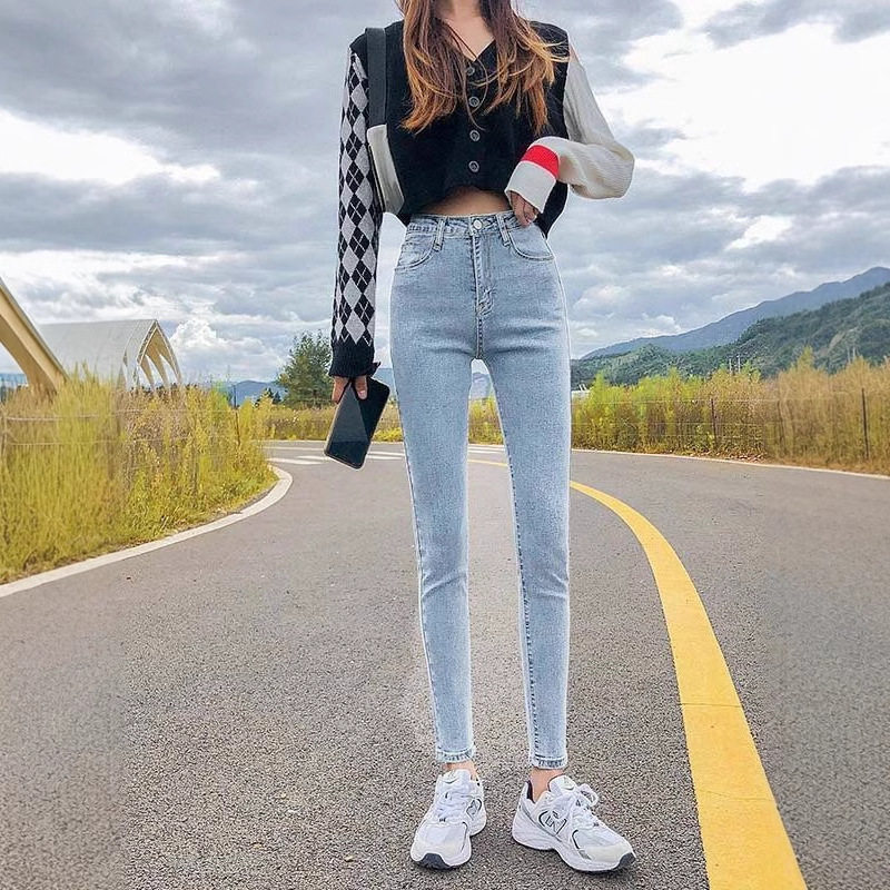 时尚牛仔裤女春秋2025新款高腰显瘦弹力紧身外穿大码铅笔小脚长裤