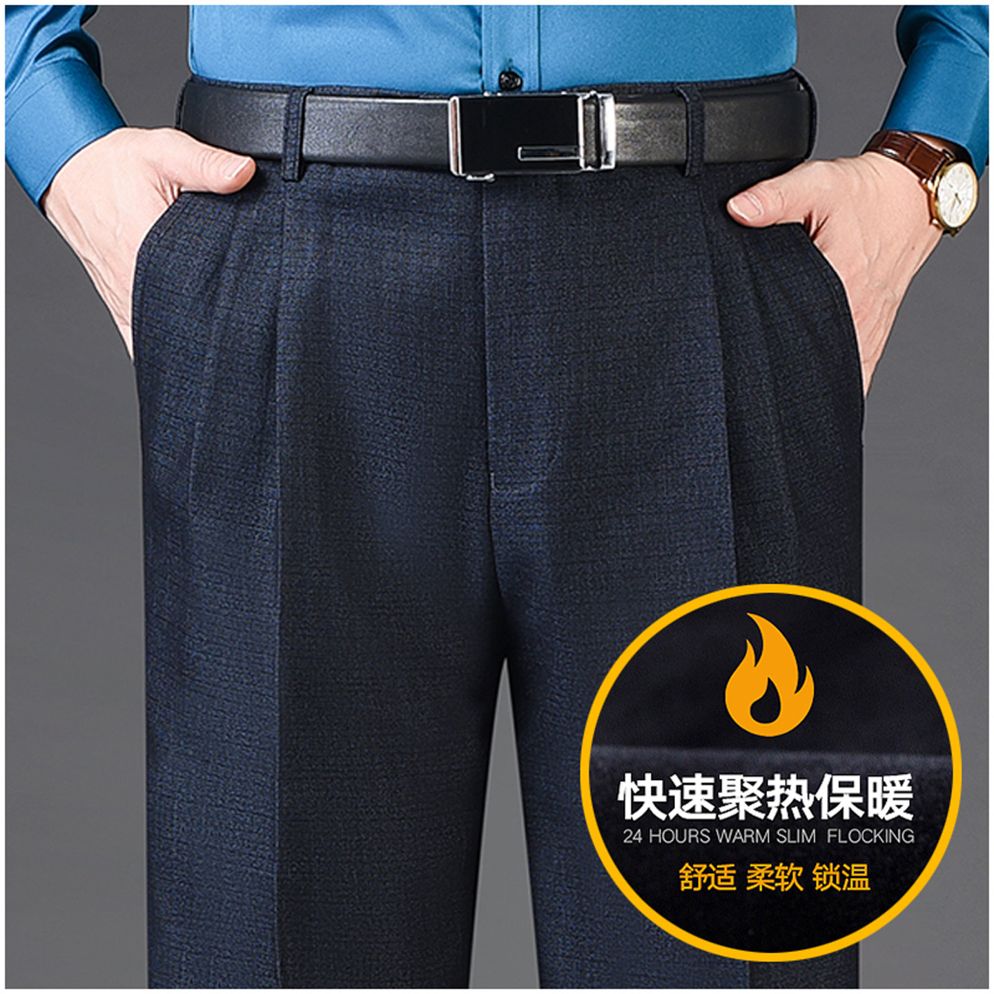 皮尔卡丹加绒保暖西裤双褶宽松