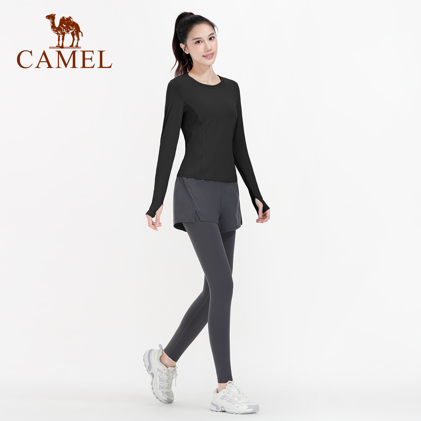 骆驼瑜伽T恤女款上衣秋跑步衣服休闲运动服紧身衣长袖修身健身服