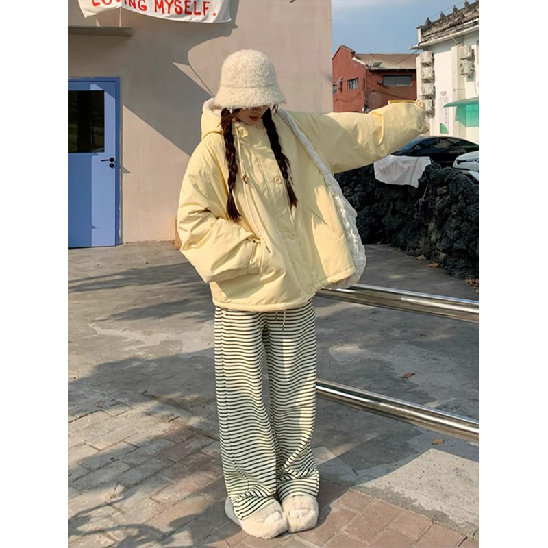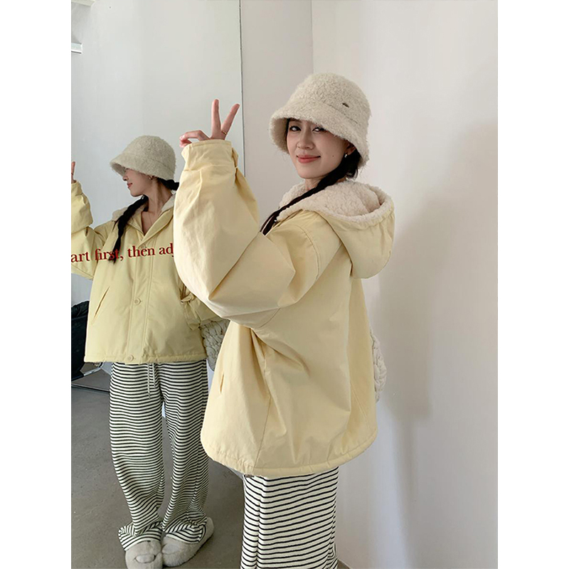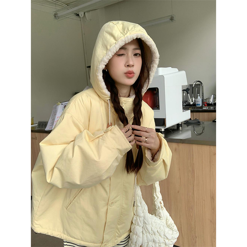 300斤大码胖mm毛绒绒奶黄色柔软加绒棉服女甜美减龄学生保暖外套