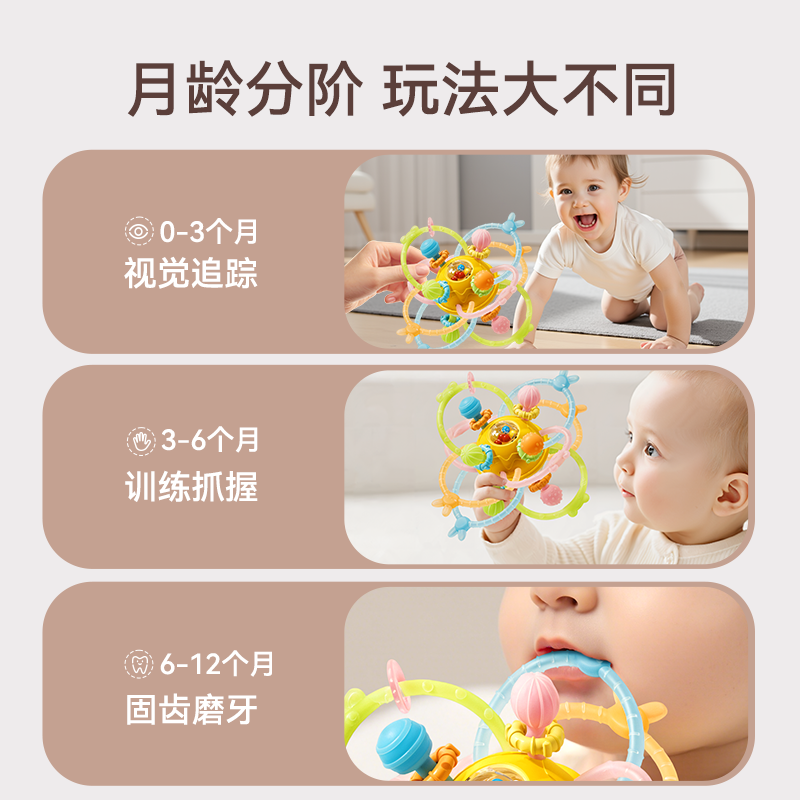 婴幼儿咬咬乐牙咬牙胶手抓球曼哈顿球安抚奶嘴新生儿消耗体力玩具