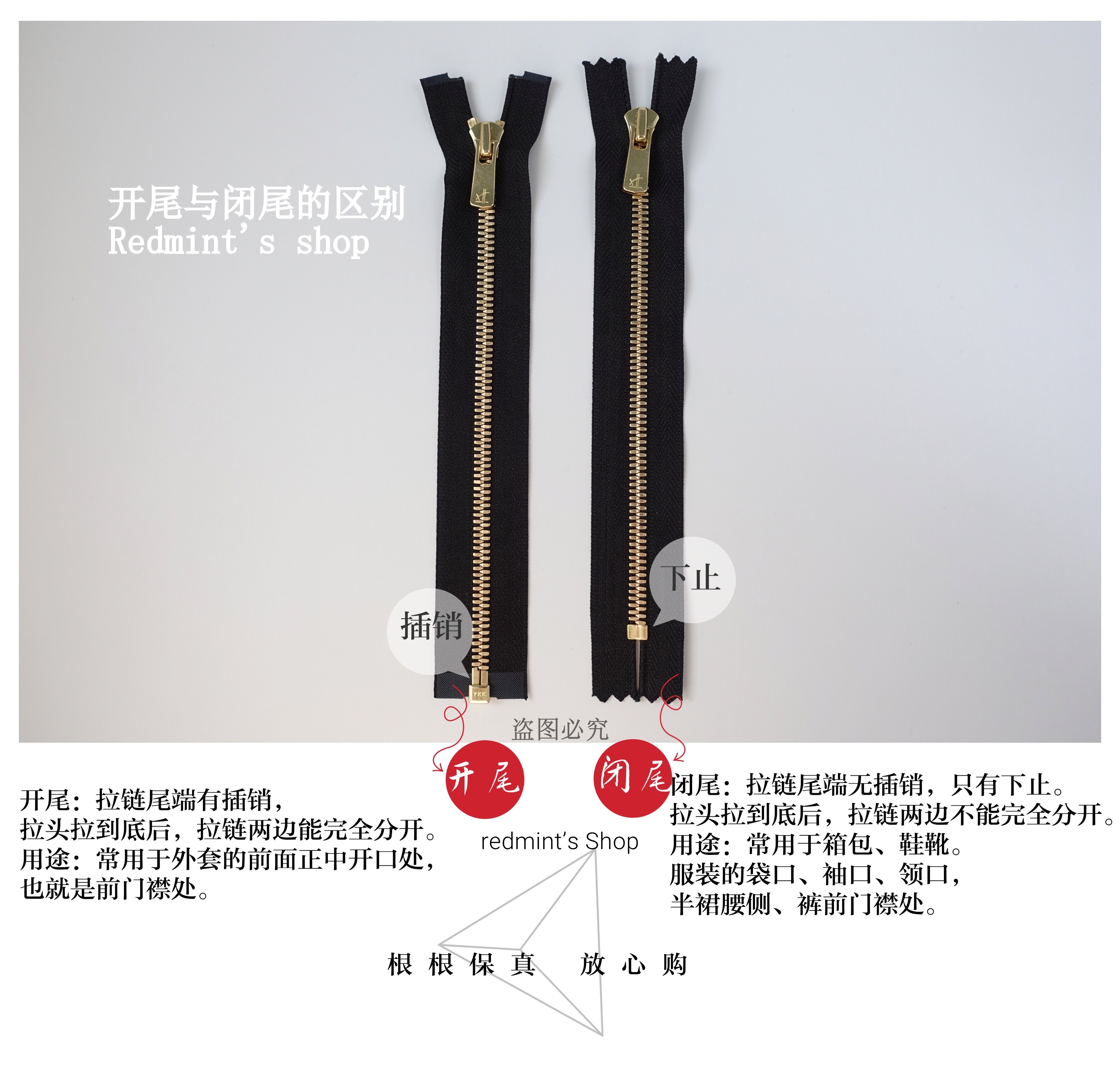 ykk金属拉链5号古铜单头开尾