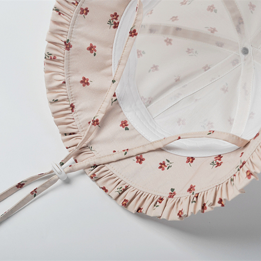 新款春夏季女童褶皱大帽檐薄款遮阳帽子婴幼儿宝宝纯棉防晒太阳帽