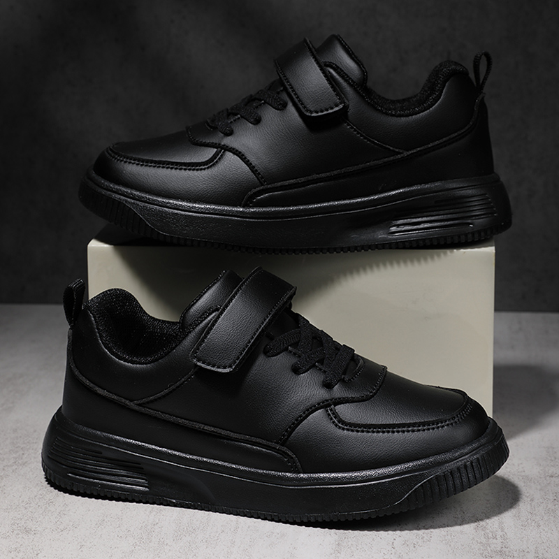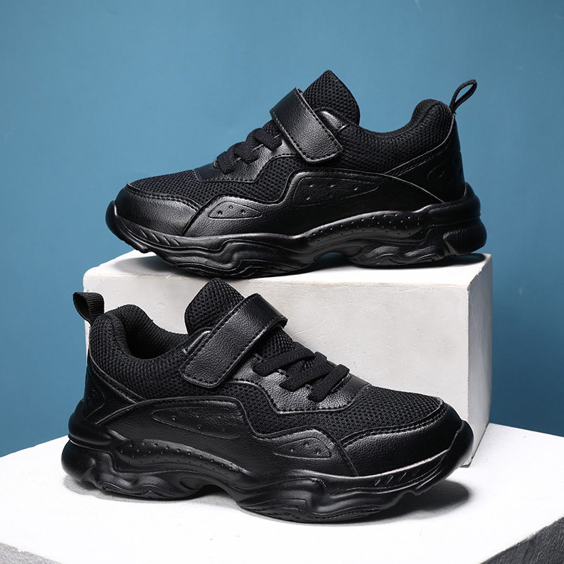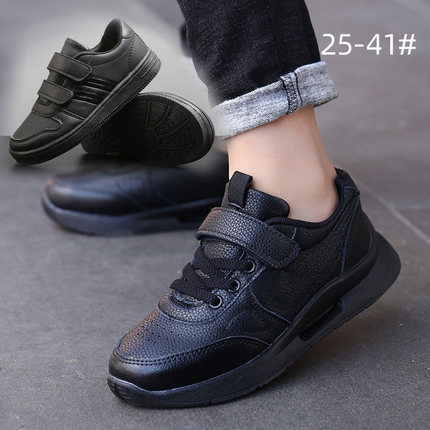 儿童运动鞋男童鞋子全黑色10网皮面中大童女孩板鞋小学生球鞋12岁