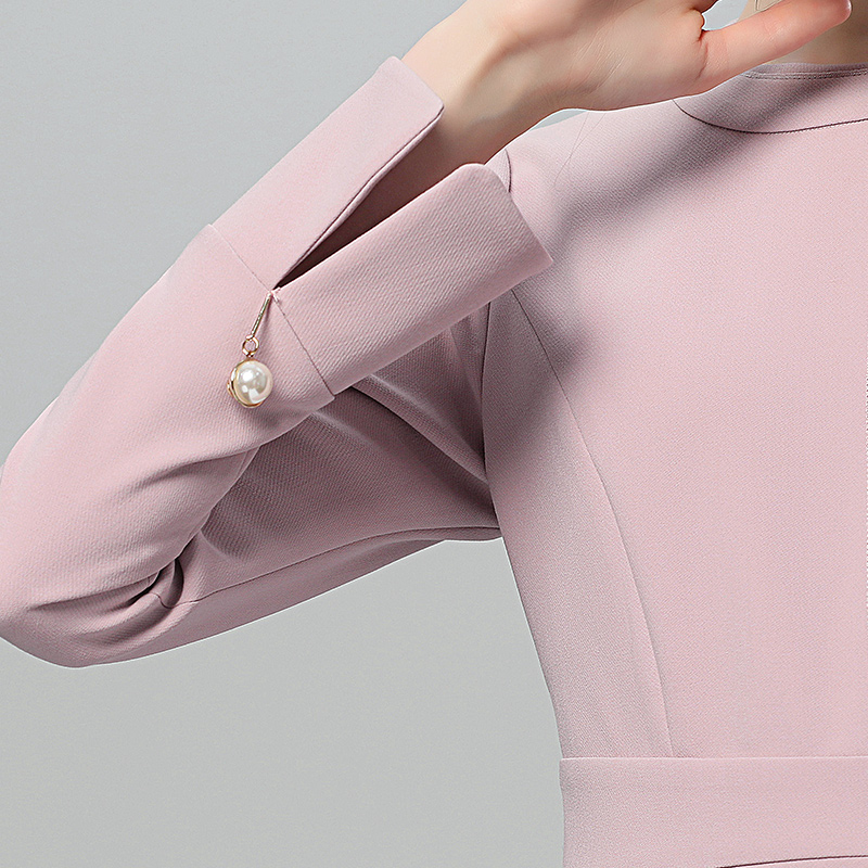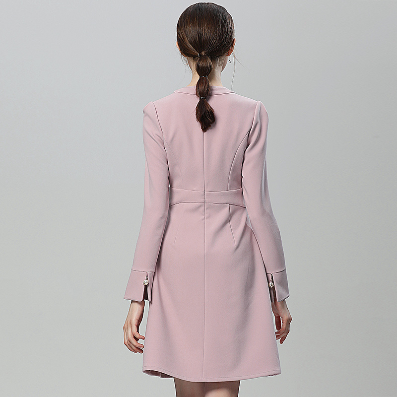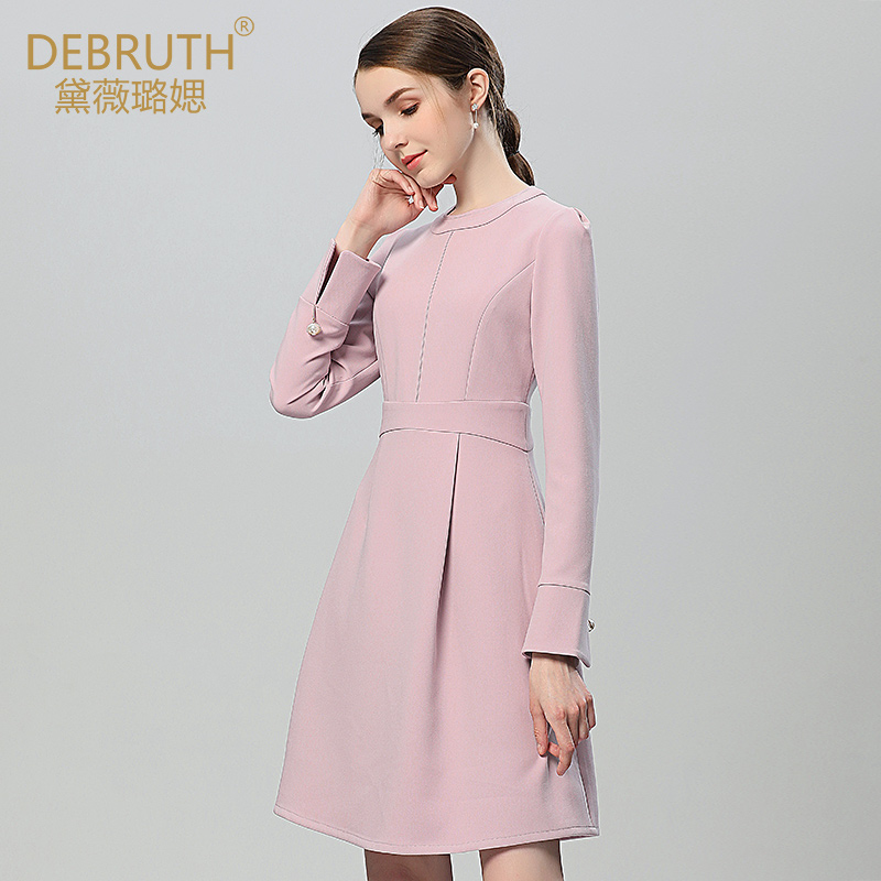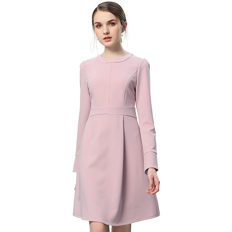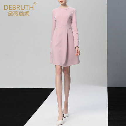 黛薇璐媤粉色圆领长袖公主连衣裙