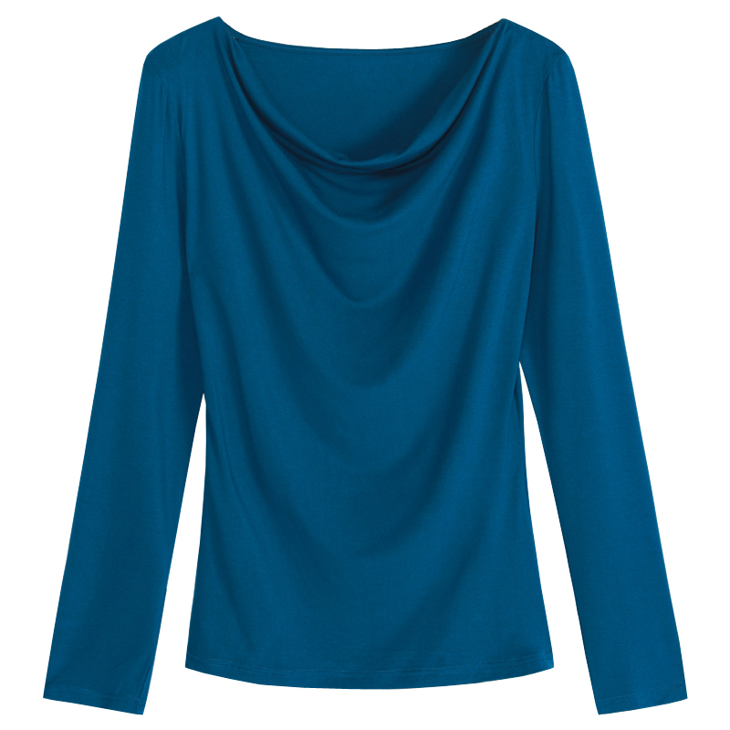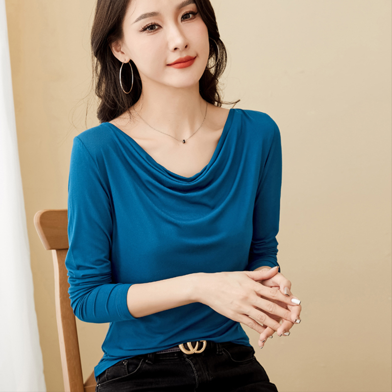 莫代尔堆堆领春秋长袖t恤女修身内搭打底衫早秋显瘦洋气上衣服女
