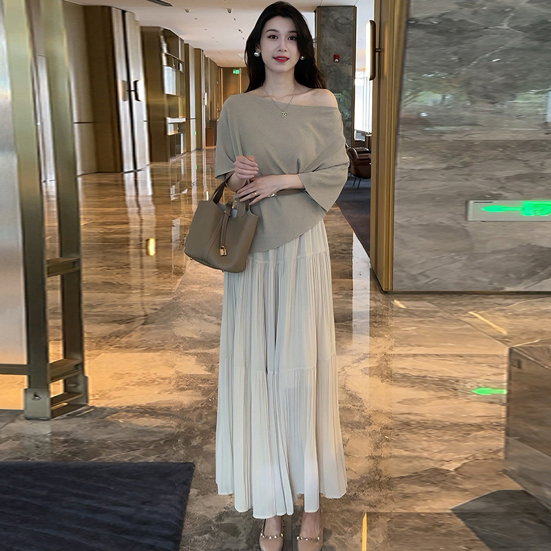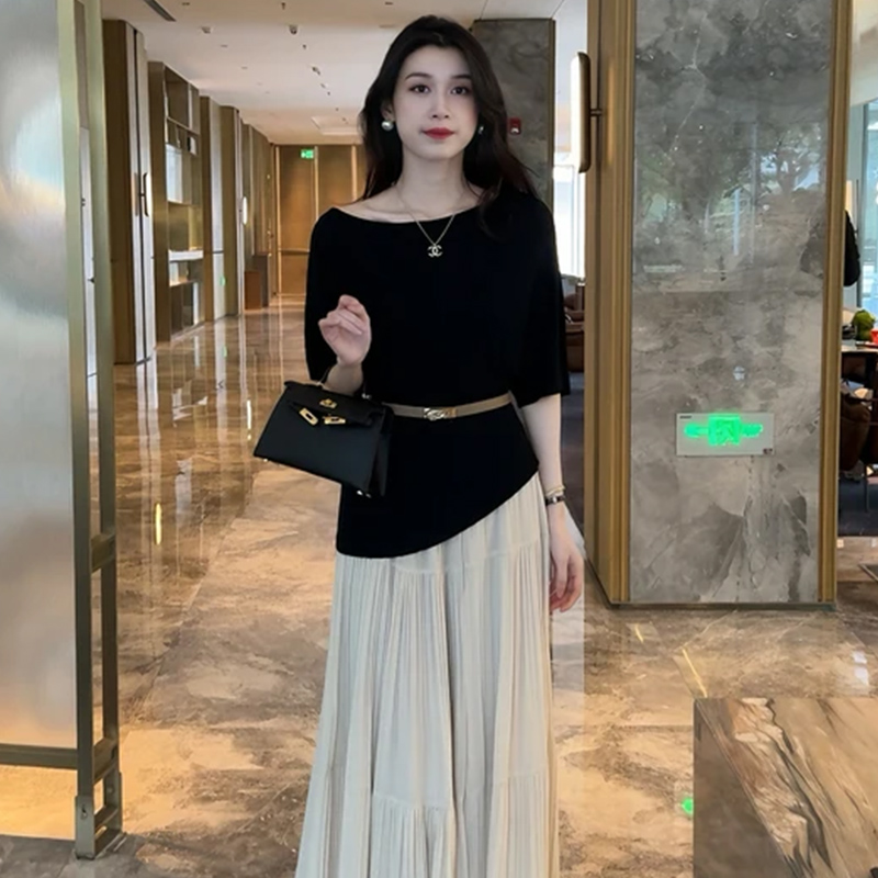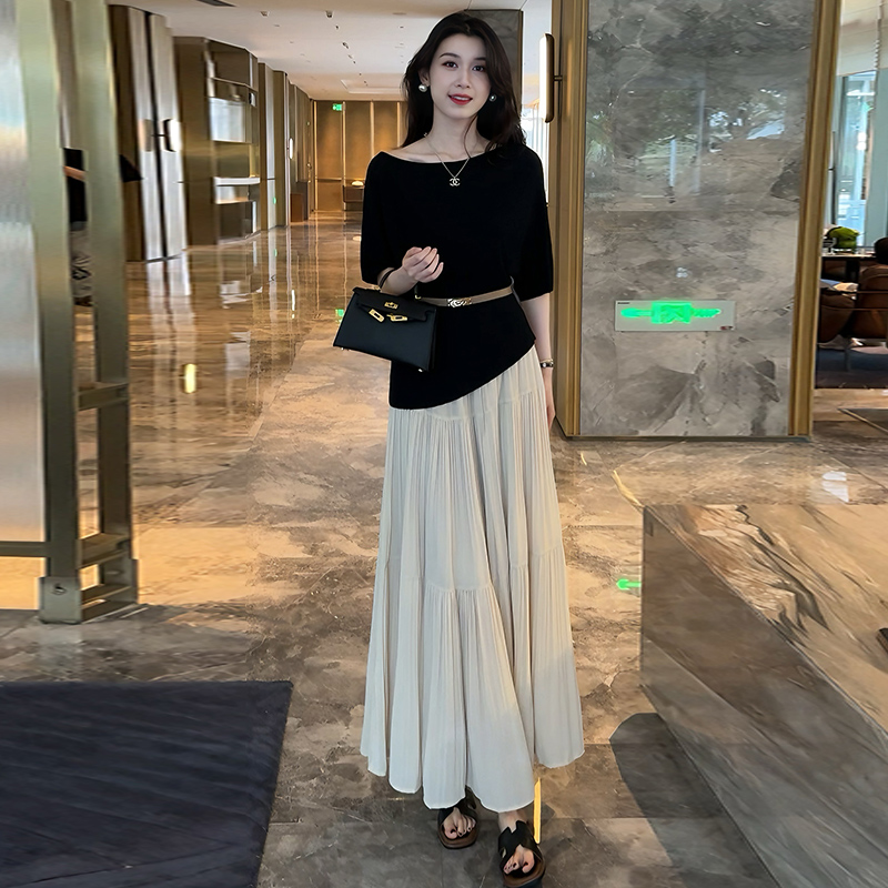 时尚连衣裙套装女2025夏季新款洋气显瘦短袖上衣高腰半身裙两件套