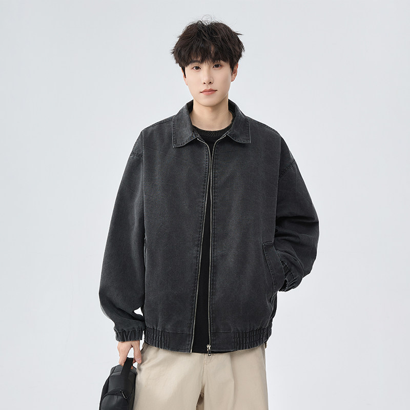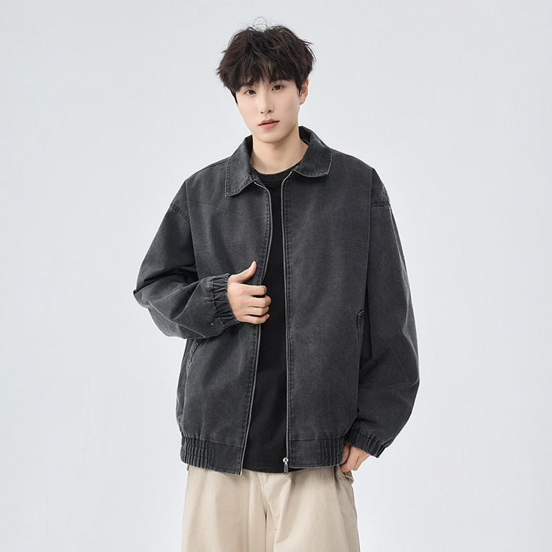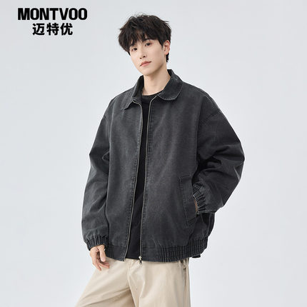 迈特优潮牌美式水洗做旧底特律工装翻领夹克男士复古宽松小众外套