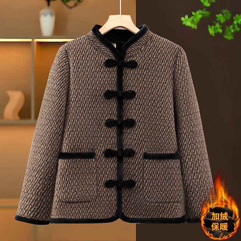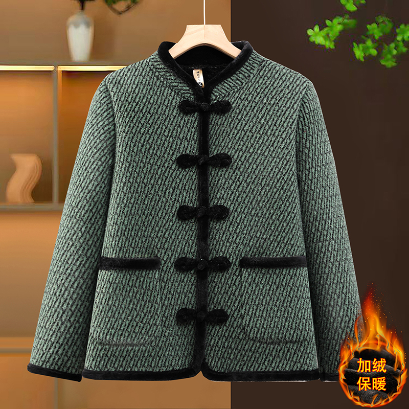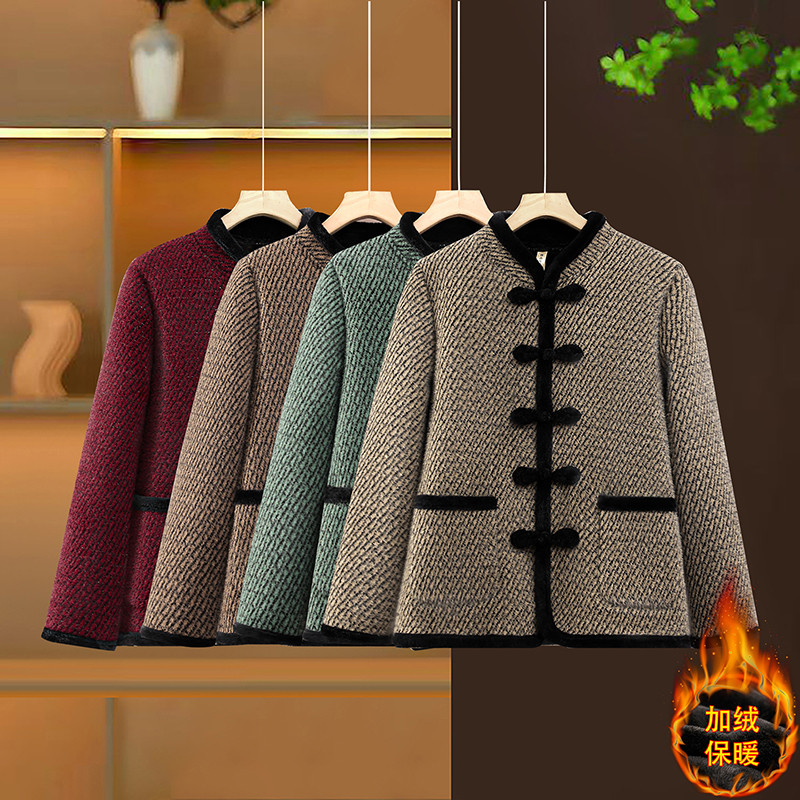 妈妈装秋冬装民族风加绒保暖外套新中老年女装中国风盘扣棉服外套
