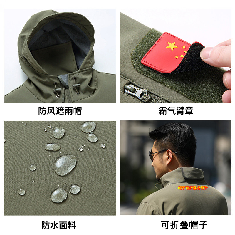 啄木鸟软壳冲锋衣男士春秋冬季户外防水防风加绒战术军旅夹克外套