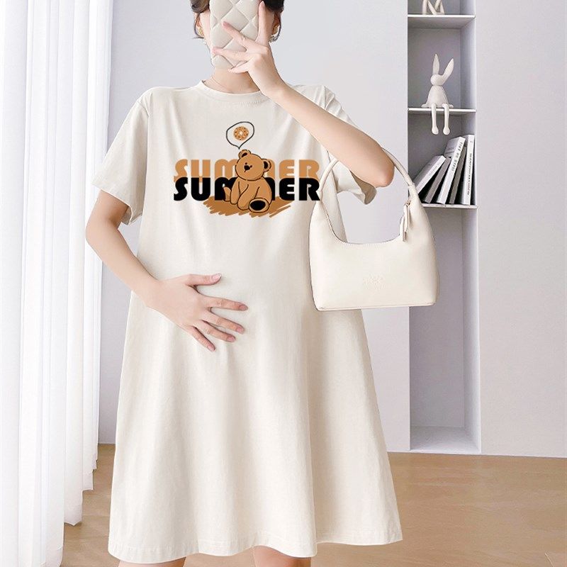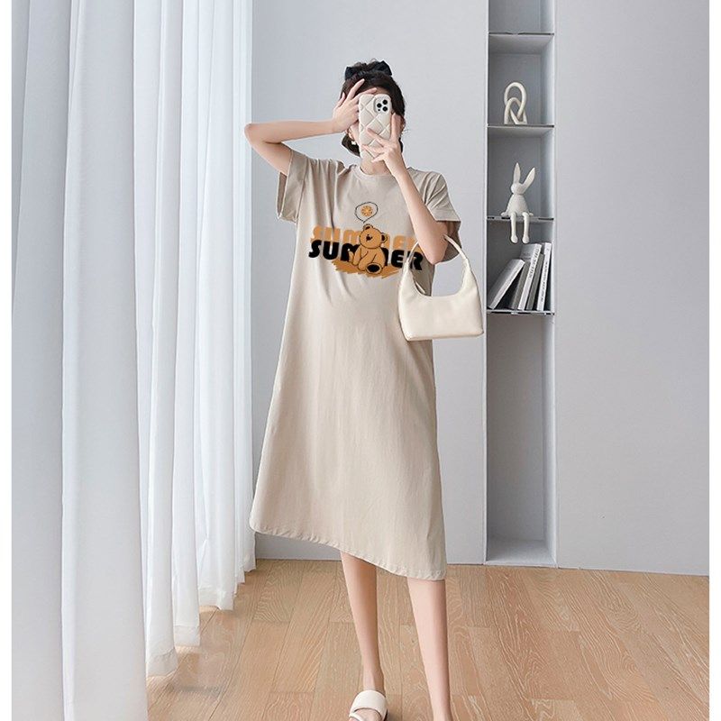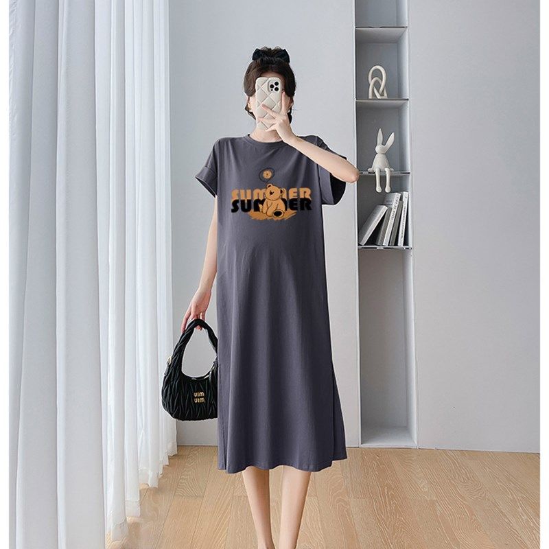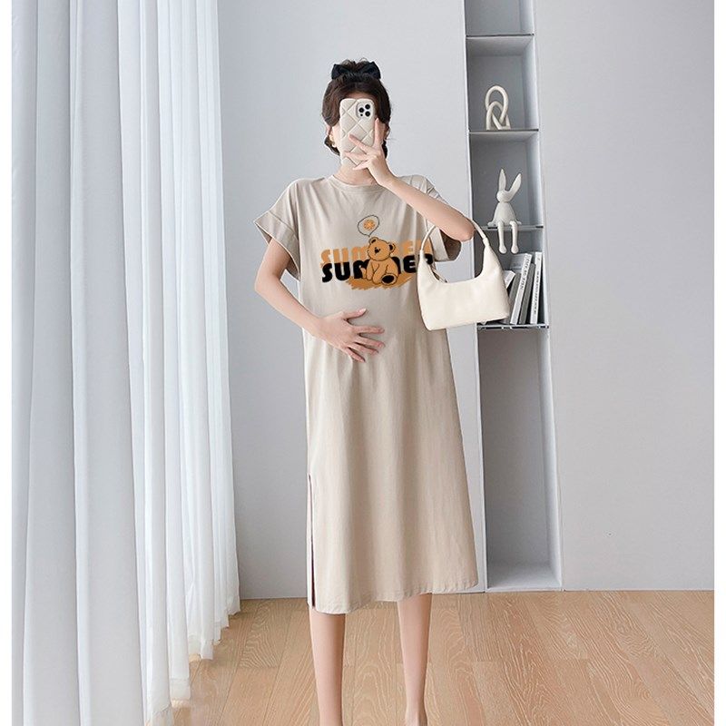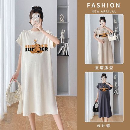 大码孕妇夏装连衣裙女中长款纯棉短袖T恤裙宽松时尚开叉显瘦200斤