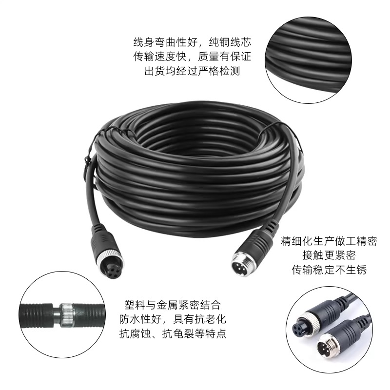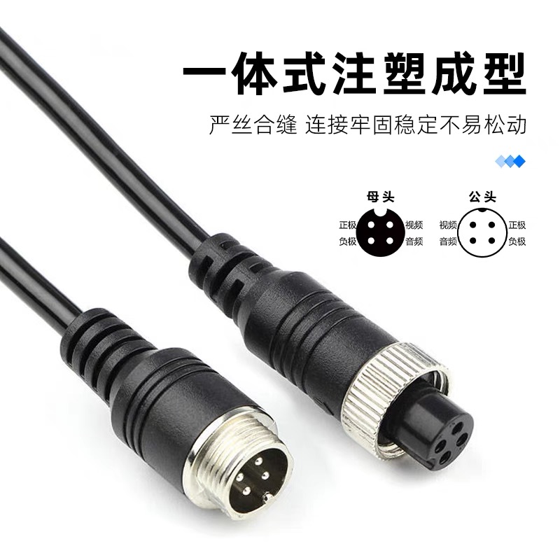 倒车挂车货车影像航空公母插头对接四路监控延长线摄像视频连接线