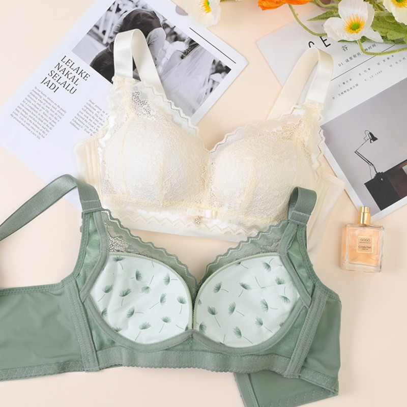 无磁无钢圈厚款小胸聚拢内衣蕾丝防下垂收副乳胸罩性感3cm文胸女
