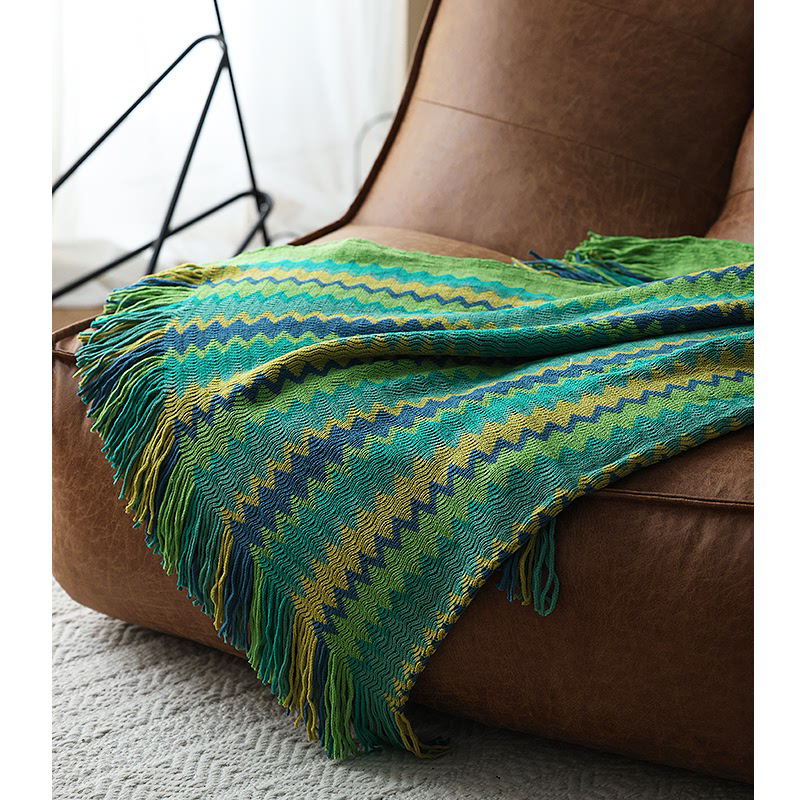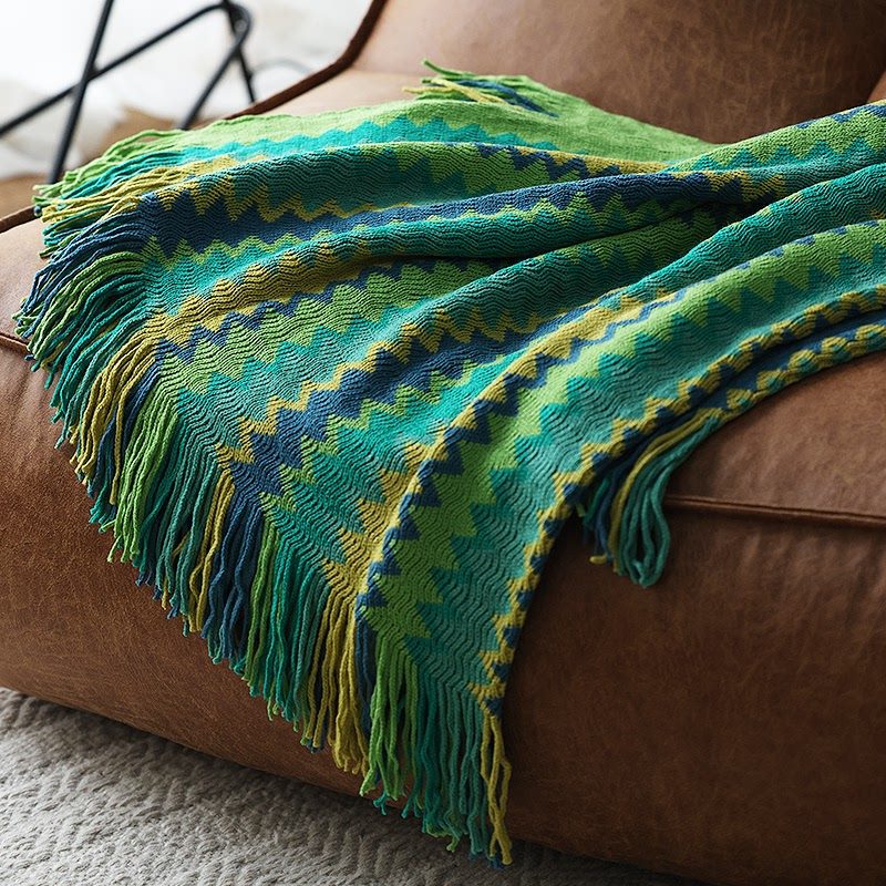 复古风针织彩色毛线沙发装饰休闲盖毯民族风摩洛哥风格搭巾新春夏