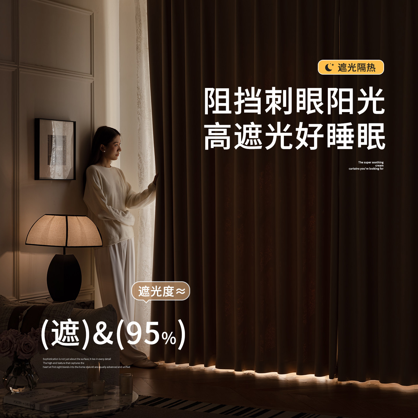 奶茶色双面雪尼尔窗帘全遮光2026新款轻奢遮阳客厅高级感防晒飘窗