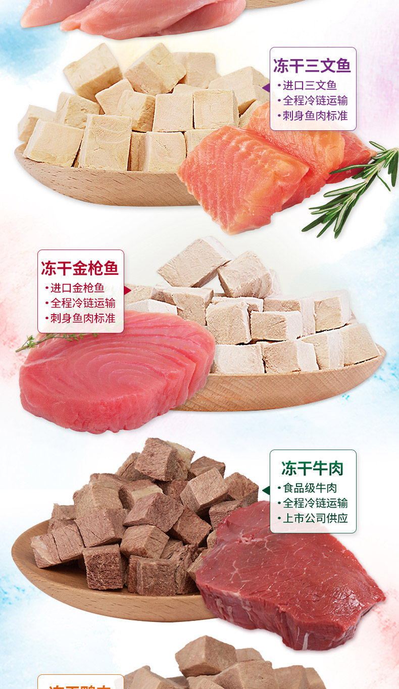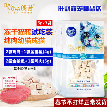 朗诺冻干猫粮试吃奖励零食鸡肉金枪鱼牛肉猫主粮纯肉冻干15g-70g