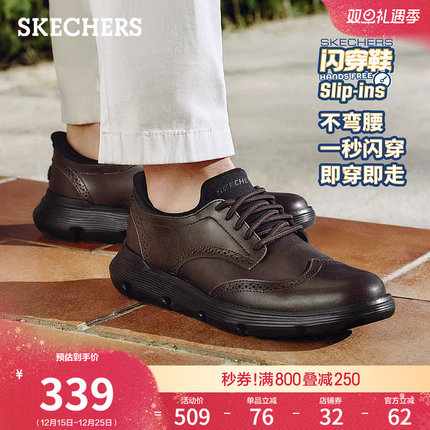 斯凯奇闪穿鞋slipins2025秋冬新款男鞋一脚蹬商务休闲黑色皮鞋