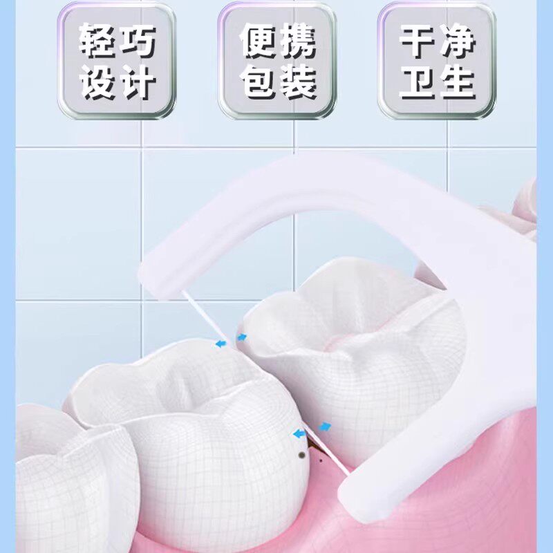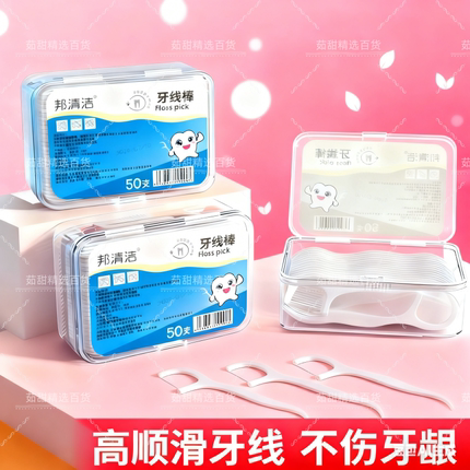 口腔清洁便携式一次性牙线棒50支盒装超细高拉力便携牙线签清洁