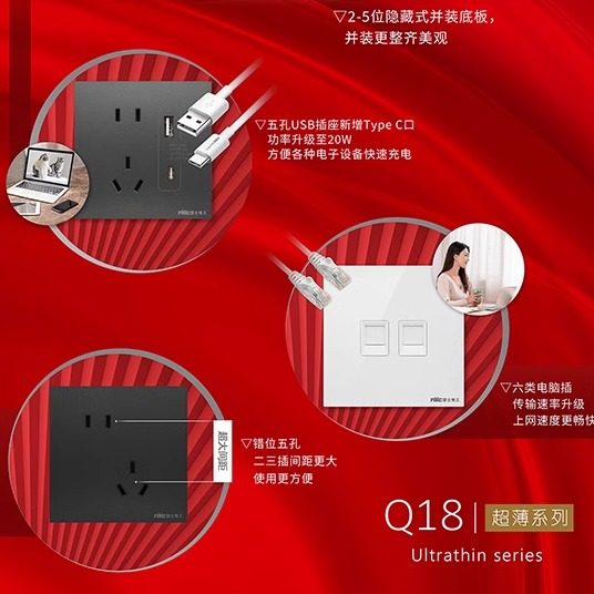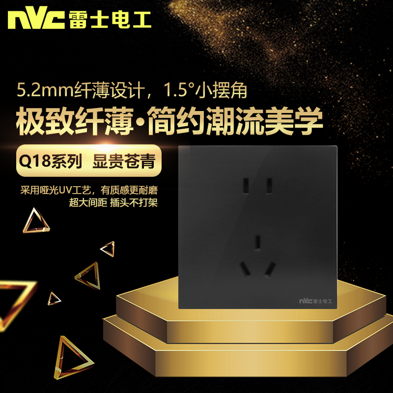 NVC雷士电工Q18苍青开关插座超薄单双控墙壁86型二三五孔空调插座