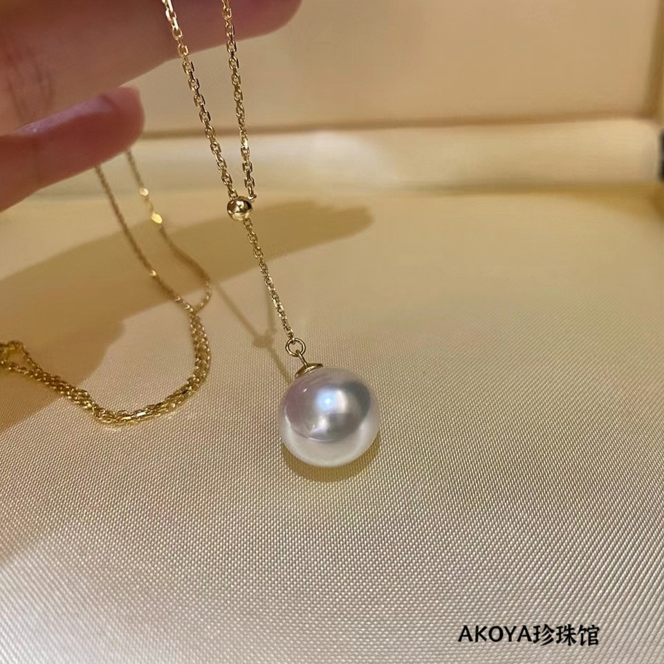 日本天然海水AKOYA珍珠Y链18K颈饰天女品质单颗项链锁骨链可调节