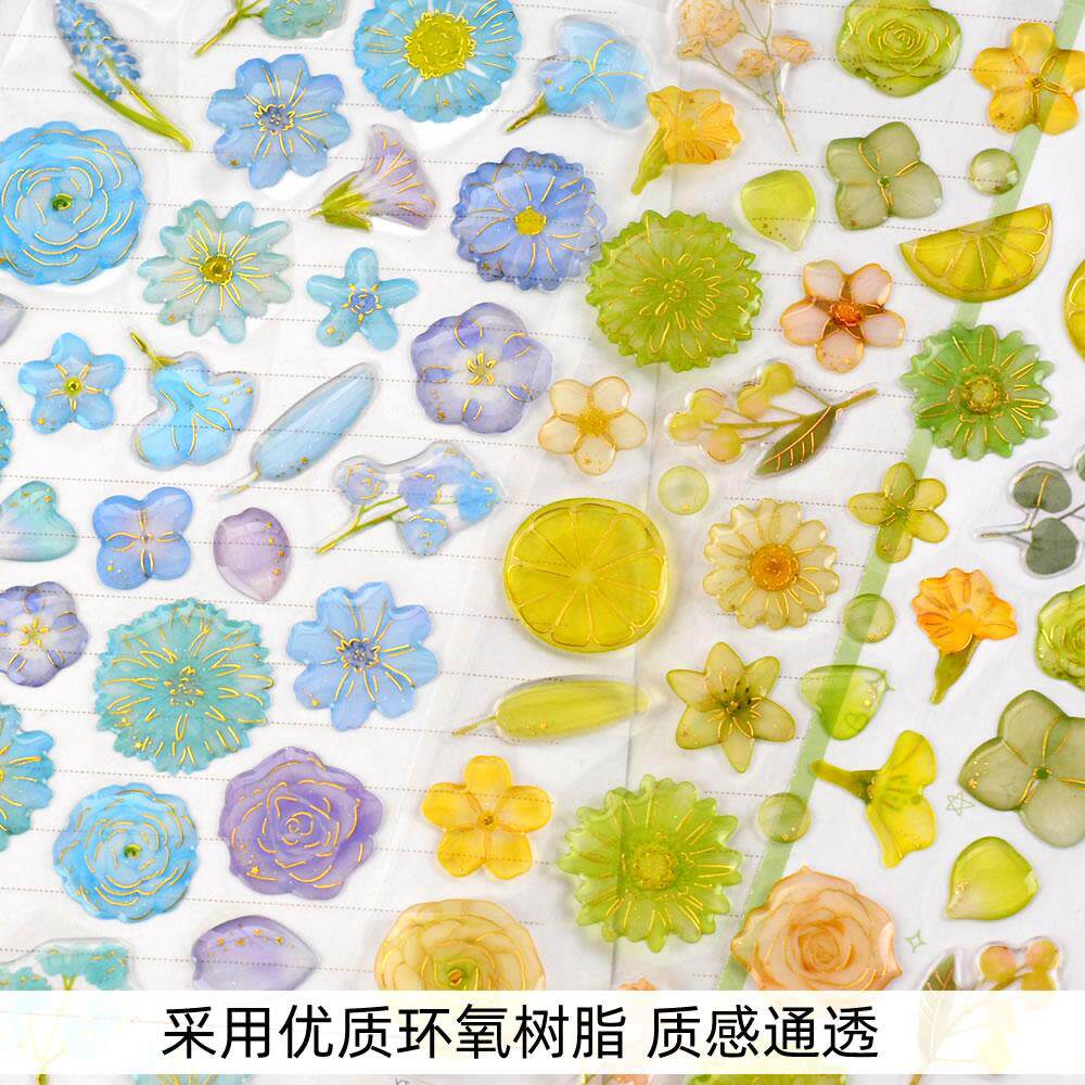 花朵水果立体3d烫金水晶贴纸儿童女孩宝宝水杯手帐装饰滴胶粘贴画