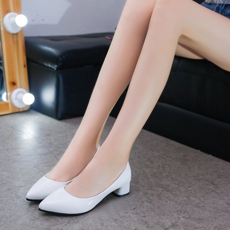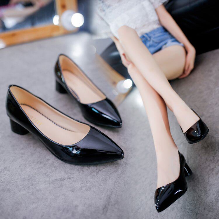 单鞋女2025新款百搭粗跟中跟小皮鞋红色伴娘尖头新娘婚鞋职业女鞋