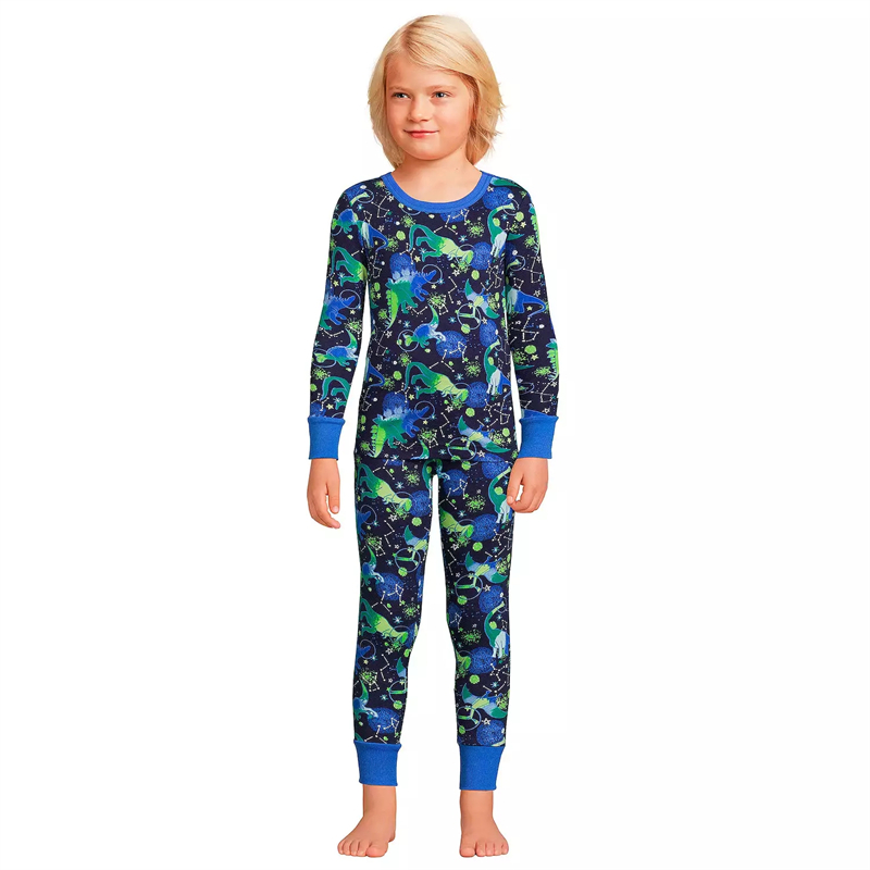 1A2 欧美男女童纯棉秋衣秋裤套装满印2-16岁儿童弹力内衣裤睡衣