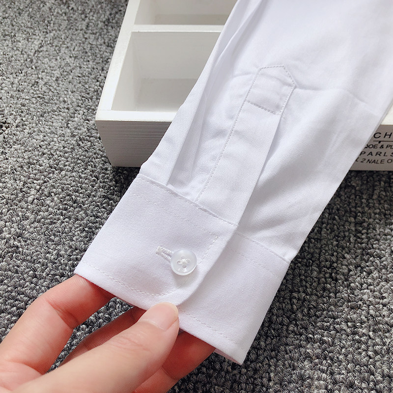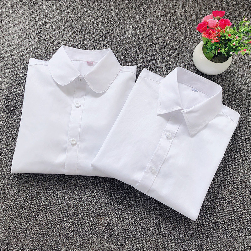 儿童白衬衫纯棉长袖加肥加大版中大童翻领上衣胖宝男女童校服衬衣