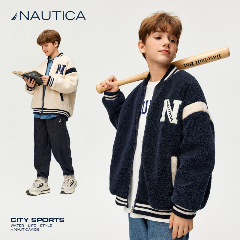 NAUTICA/诺帝卡童装 男童女童棉服秋冬季儿童羊羔绒抓绒外套加厚