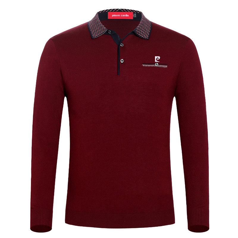 皮尔卡丹桑蚕丝长袖t恤男士