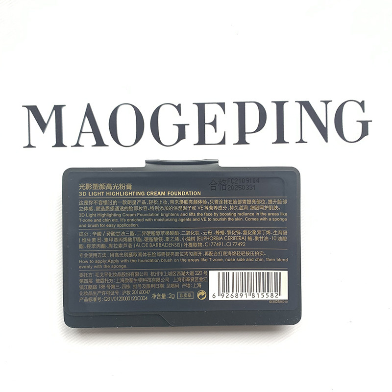 毛戈平光影塑颜高光粉膏哑光提亮泪沟法令纹肤色小样带粉扑中样2g
