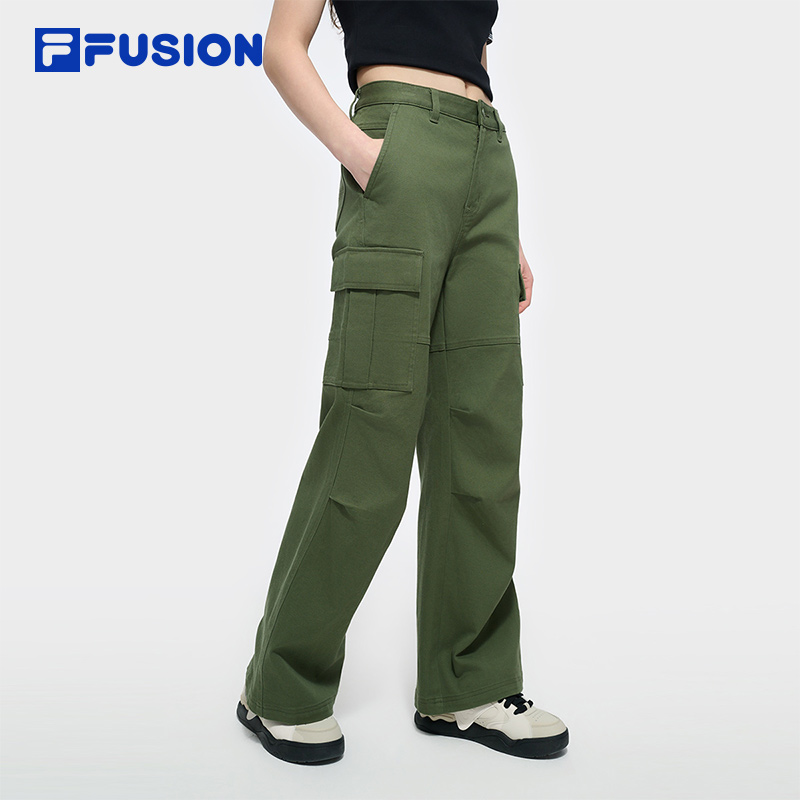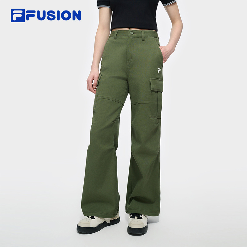FILA FUSION斐乐潮牌梭织长裤女2025春新年款时尚宽松休闲工装裤