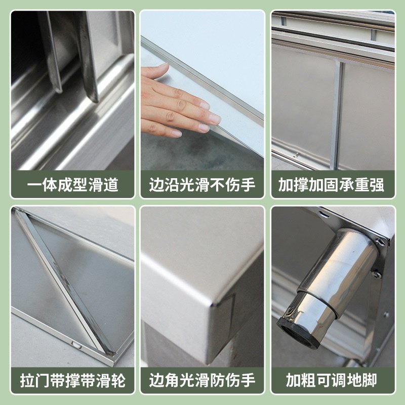 厨房操作台不锈钢工作台面带拉门案板储物柜切菜桌子商用专用饭店