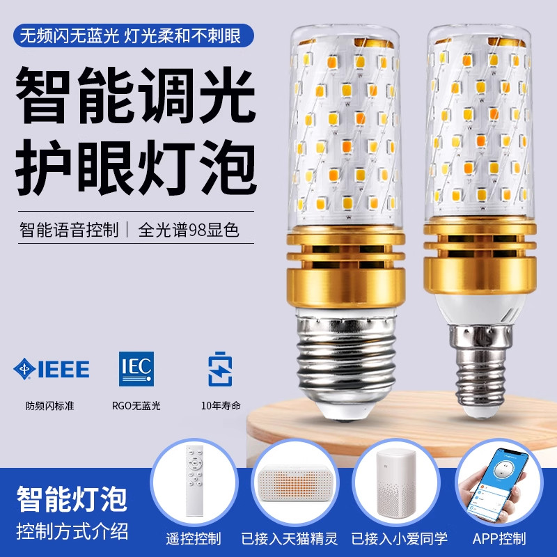 已接入米家智能led灯泡E14E27螺口全光谱玉米灯柱形节能护眼光源