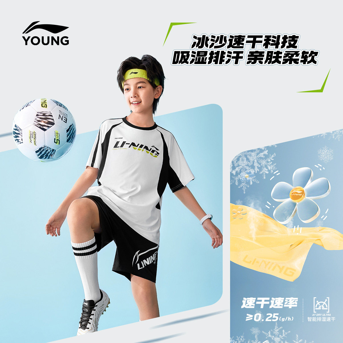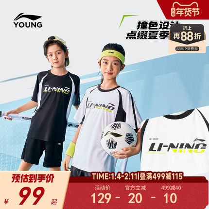 李宁儿童速干衣短袖T恤宽松足球服2025新款夏季男童装中大童夏装