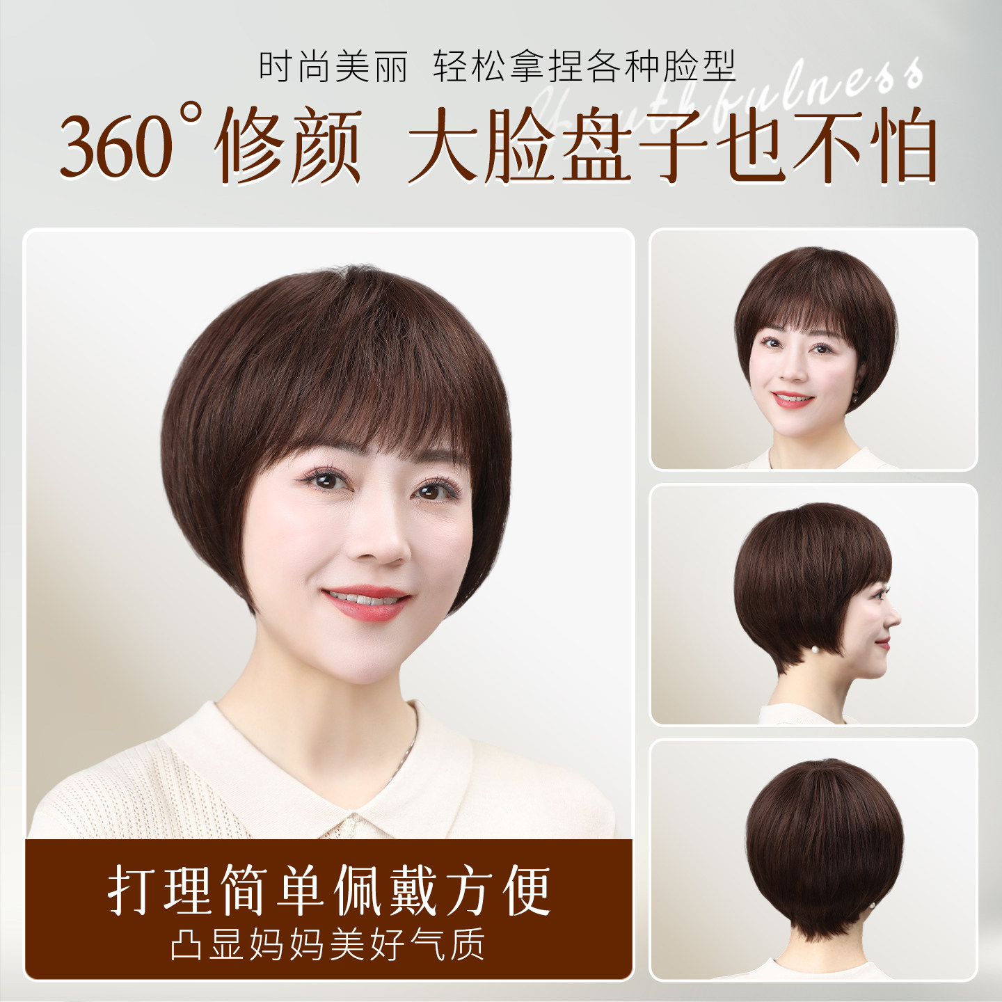 短发中老年妈妈假发全头套女真人发丝自然减龄波波头