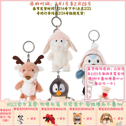 德国 NICI Winter friends 企鹅/驯鹿/兔子/小鸟钥匙扣 10cm