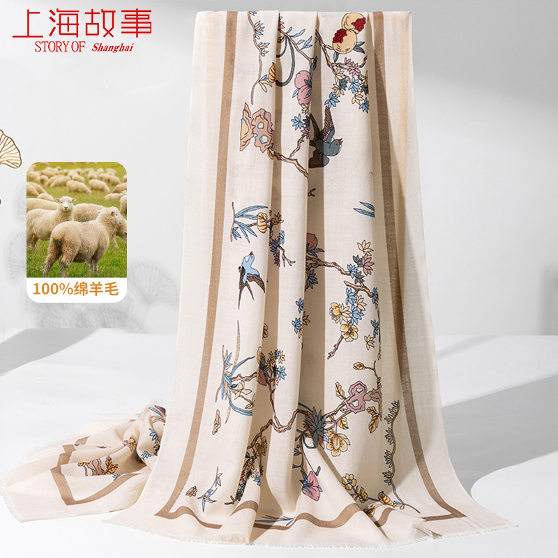 上海故事羊毛围巾女冬季保暖防寒围脖披肩送长辈妈妈生日礼盒装