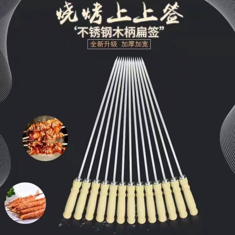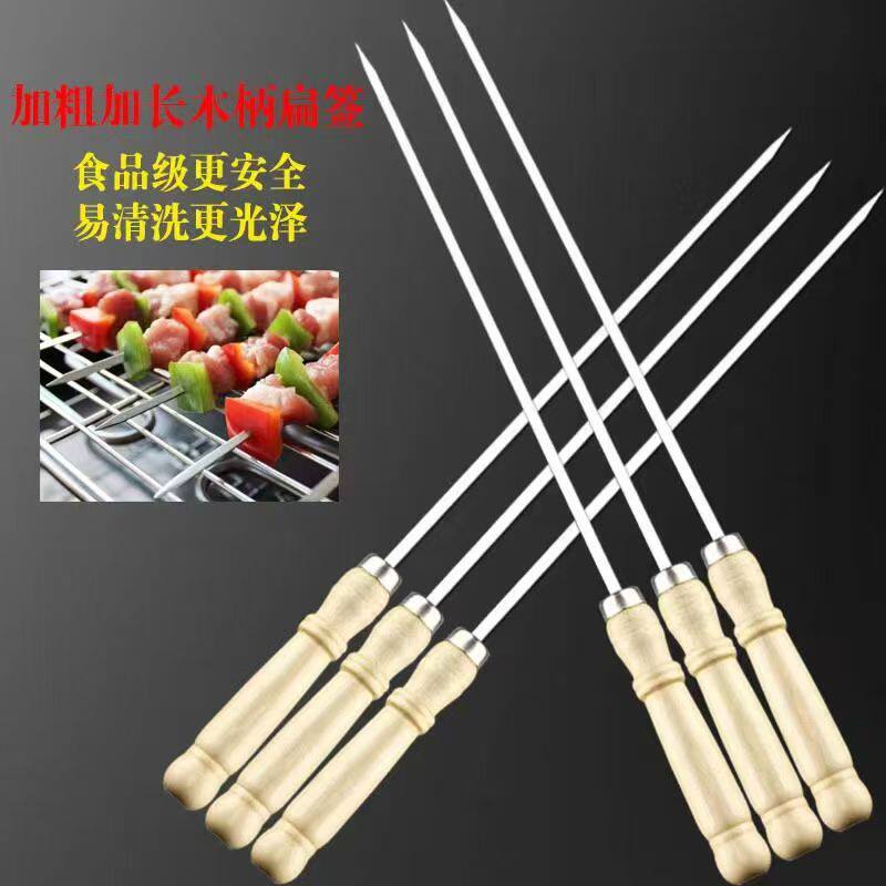 加厚加粗不锈钢木柄烧烤签子烤串用品羊肉串圆扁签户外用具烧烤