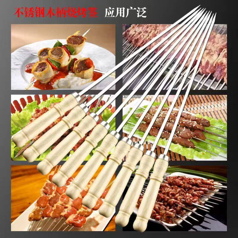 烧烤用加厚加粗不锈钢木柄烧烤签