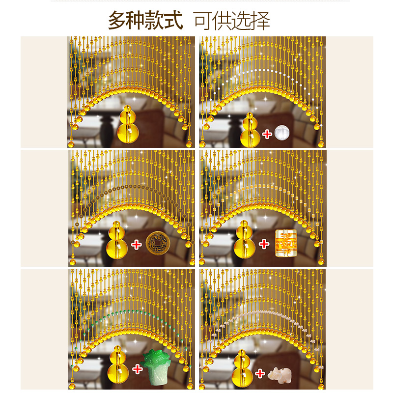 水晶珠帘门帘客厅隔断帘2025年新款金黄色葫芦帘子卫生间免打孔