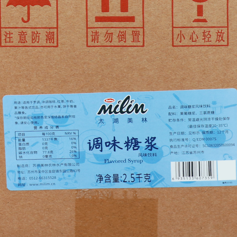 太湖美林果糖原味调味糖浆2.5kg*6瓶奶茶咖啡果汁原料果葡糖浆F55